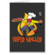Een cartoon van een man verkleed als een superheld met een bord steaks en hotdogs en een spatel op een brandwerende achtergrond en onderschrift Super Griller, beschikbaar op grilling-overhemden, tekenaars, petten, knoppen en nog veel meer. Maak geweldige Vaderdag of verjaardagsgeschenken.