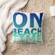 Sur le bleu de temps de plage et le coussin de