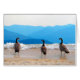 Een digitale weergave van drie Canadese Gese denkplaat die naar het binnenkomende surf op de kust van het Pend Oreille-meer op Sandpoint, ID, gaat; blauwe bergen liggen op afstand.