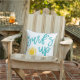Geef je strandhuis, patio of poolgebied op met onze zomerige buitensteentjes. Cute quote design is uitgerust met "surf omhoog" in levendige tropische blauwgroen, handgeschreven stijl typografie met een heldere geelzonneillustratie. De piloot keert terug naar turquoise en witte strepen.