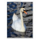 Un cygne sur un lac avec les reflets abstraits d'autres cygnes dans l'eau autour. Prise à Roath Park. Cardiff, Wales.