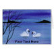 Een waterverf schilderij van twee mooie zwanen in de avondschemering.