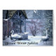 Une belle scène d'hiver avec des cygnes blancs et des oiseaux et un puits de souhaits, avec les mots "Blessed Winter Solstice"