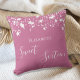 Een kussen voor een Sweet 16, 16e jaar oude meisjeskamer. Een donkerroze achtergrond met sterren. Een naam personaliseren en toevoegen. Sweet Sixteen is geschreven met een groot modern handgeschreven stijlscript.