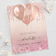 Een rozen gouden en roze gradiënt achtergrond op de voorkant. Met faux roos gouden glitter druppels en ballonnen als decoratie. Aan de voorzijde een met de hand geletterd stylescript en de tekst: Thank You. Personaliseer en voeg een naam/tekst en een datum toe. Terug: Ruimte voor u om met de hand te schrijven.