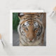 Het gezicht van een tijger staat dichtbij en persoonlijk.