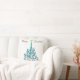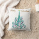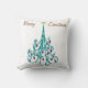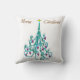 Mooi kussen met een origineel digitaal schilderij van Leslie Sigal Javorek van een wervelende turquoise kerstboom met violette ornamenten op een Trompe L'oeil (truc van het oog) achtergrond illusie van fijne bot china & grotere diepte.