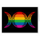 Un symbole de triple déesse aux couleurs arc-en-ciel.