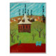 Het schilderen door de Hongaarse primitieve kunstenaar Zoltán István László van een scène uit het Hongaarse Open Luchtmuseum in Szentendre, Hongarije.