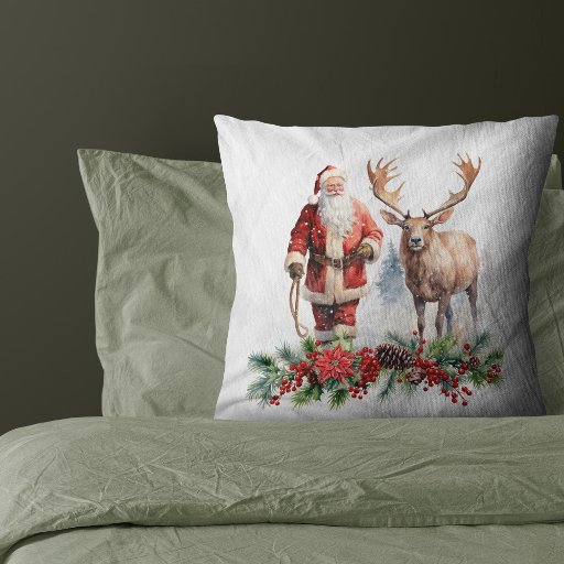 T-shirt Courbe d'aquarelle simple Père Noël avec rennes