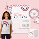 Votre enfant d'anniversaire adorera ce t-shirt d'honneur personnalisé avec un arc-en-ciel en bleu, rose et corail et turquoise. L'âge est personnalisable. Partie d'une collection pour Parcel Studios.