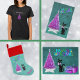 This tee shirt has a pink Christmas tree in a silver stand with sparkle like silver decorations and star. Customise your text with the template.
