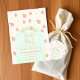 Pêches douces, fleurs rétro blanches et en vichy vert clair