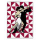 Blanco stijlvol wenskaart met gepassioneerde tango-dansers tegen een stevige geometrische achtergrond.