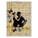 adaptation d'un collage numérique romantique d'une peinture originale d'art, de deux danseuses de tango de salle de bal, ou couple mariage avec une robe gothique noire, par Kevin Sean O'Connell, sur un arrière - plan vintage en papier avec des papillons collés, et fleur de lys.