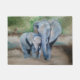 Ce tapis de porte comporte une reproduction d'une peinture à l'huile faite sur commande d'un éléphant de mère et de bébé - perfectionnez pour n'importe quel animal ou art inspiré à la maison ou crèche !