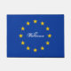Tapis de porte drapeau de l'Union européenne avec texte personnalisé pour la maison ou le magasin. L'euro est une vedette de l'Europe. Bleu et jaune. Faites votre propre tapis de porte sur mesure pour maison, restaurant, hôtel, affaires, bureau, entreprise, boutique etc. chic pays. Ajoutez votre propre message de bienvenue, nom de famille, monogramme, nom de magasin ou citation amusante. Idée cadeau mignonne pour la nouvelle fête de la maison. La typographie des grandes lettres. Arrière - plan couleur personnalisé. Typographie rustique vintage. Modèle de porte personnalisable. Créez votre propre tapis / tapis d'entrée pour porte d'entrée / entrée ou hall. Décor / décorations personnalisables pour votre maison ou magasin.