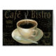 © Daphne Brissonnet/Apple sauvage. Une tasse noire de café chaud avec une soucoupe et une cuillère à café. Des mots français peuvent être vus sur l'arrière - plan noir.