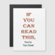 Een grappige tekst die zeker een glimlach op ieders gezicht zal toveren. De tekst zegt: Als je dit kunt lezen, ben je te dichtbij.