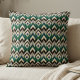 Teal, gold and ivory Deco chevron pattern with bold geometric arrows and diamond details. This modern Neo Deco design adds structure, depth and luxury to contemporary interiors with its refined palette and elegant symmetry.