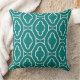 This striking repeating pattern showcases a series of white outlined ogee shapes alternating with inner quatrefoil-like figures, all set on a textured, deep teal background, creating a visually dynamic effect.