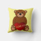 Mignonne, photo d'un ours en peluche tenant un coeur, avec le message, "I LOVE YOU", est présenté sur cet oreiller de lancer. Arrière - plan jaune clair, coussin a le même design à l'avant et à l'arrière. Décorez votre maison ou offrez-en un cadeau pour la Saint-Valentin! Fabriqué aux États-Unis>