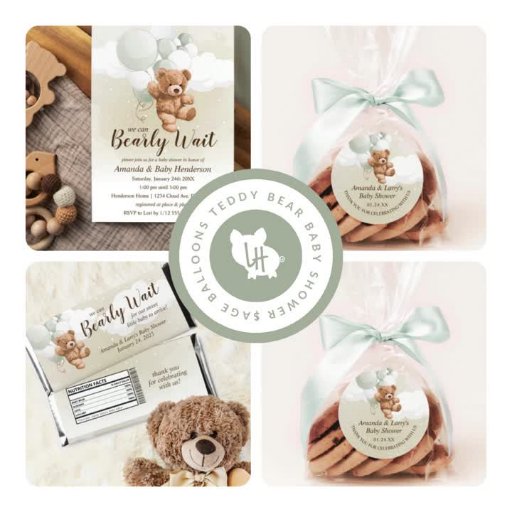 Sage Balloons Teddy Bear Baby ShowerOntworpen door Amanda Cudnik