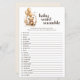 Maak je baby shower extra leuk met dit schattige "Baby Word Scramble" spel, met een lieve waterverf-afbeelding van een schattige teddybeer met ballonnen. Gasten zullen dol zijn op het ontrafelen van baby-gerelateerde woorden in deze boeiende activiteit, ideaal om iedereen te vermaken. Bestel de jouwe vandaag en creëer een leuke, gedenkwaardige ervaring voor uw gasten!