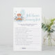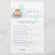 Stap in een wereld van schattige charme met onze "Teddy Bear Who Knows Mommy Best Baby shower Game", een ontwerp dat de essentie van zoetheid uit de kindertijd en het plezier van het verwelkomen van een nieuw leven vastlegt. In het hart van dit ontwerp staat een winderige waterverf teddybeer centraal, die drie blauwe ballonnen achter zijn rug vasthoudt met een luchtige geheimhouding. Het is een vertederende scène die de vreugde en het wonder belichaamt van het verwelkomen van een kostbare baby jongen in de wereld. Onder de poten van het beer ontvouwt zich een bed van delicate blauwe bloemen als een rustige weide. Elke bloei is een bewijs van de schoonheid van natuur en de zachte, verzorgende liefde die de aanstaande komst van een kostbare babyjongen omringt. Het kleurenpalet is een zachte mix van zachte blues en aardse bruinen, waardoor een sfeer van rust en rust ontstaat. Deze tinten zetten het podium voor een viering gevuld met liefde en de belofte van een nieuw begin. Het belooft een bijeenkomst gevuld met gelach, oprechte gesprekken en de vreugdevolle verwachting van een kostbare kleine. De meeste letters kunnen worden bewerkt - klik op de knop "Aanpassen Verder" om te bewerken. Overeenkomende objecten beschikbaar.