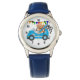 Een schattige teddybeer zit in zijn blauwe racewagen, zwaaiend met zijn geruite vlag. Hij draagt een bril en heeft een kleurrijke racebanner boven zich. Zwarte cijfers op de perimeter maken het horloge gemakkelijk af te lezen. * Bedankt naar Real Deal Clipart voor de clipart gebruikt om creëer dit ontwerp.