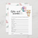 "We kunnen bijna wachten". Vier met deze teddybeer thema baby shower feest! Waterverf schattige teddybeer met kleurrijke ballonnen. Achtergrond met waterverf blauw-roze luchten. Overeenkomende objecten beschikbaar. ANTWOORDEN: VERLANGENS, HUILEN, FLES, NACHTLICHT, SLAAP, KINDERWAGEN, EPIDURAAL, BOER, HOGE STOEL, LUIERTAS, SWADDLE