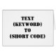 "TEKST (TREFWOORD) NAAR (KORTE CODE)" Wijzig TREFWOORD en KORTE CODE in uw eigen tekstberichten trefwoord en korte code. Voeg een andere slagzin of tekst toe.