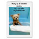 Faites la fête de quelqu'un avec cette carte de voeux. Que vous l'envoyiez par la poste ou que vous le mettiez dans un panier-cadeau, il est sûr de leur faire un sourire. Le chien modèle est BooBoo Girl. C'est un demi shih-tzu et un demi chihuahua.