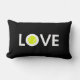 Een gooikussens voor de tennispersoon die LOVE leest met een gele tennisbal in het midden van de O. De zwarte achtergrond kan worden gewijzigd in de bewerkingskeuzelijst.