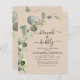 Budget Brunch en Bubbly Eucalyptus Groen Succulent Botanische Waterverf Emerald Green Spring Wedding Vrijgezellenfeest QR Code Invitations op een witte achtergrond - bevat prachtige en elegante scripttypografie met moderne botanische bladeren en groen voor de speciale bruid om te vieren.