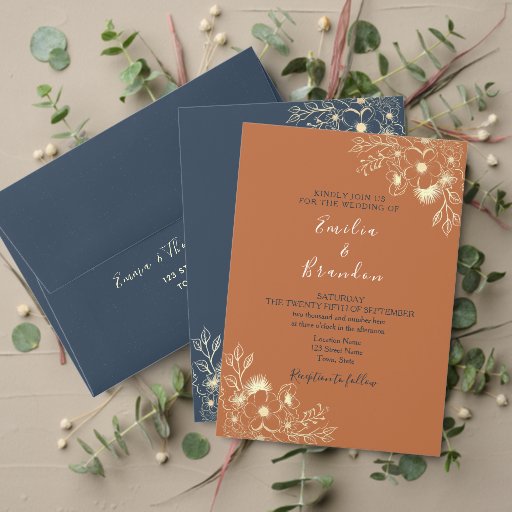 Navy Blue Terracotta Gold Floral Wedding SuiteOntworpen door Yana Bor
