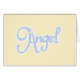 Ces t-shirts et autres objets ont le mot "ange" en lettres bleues mignonnes avec un petit halo autour de l'A.