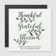 De dankbare Grateful Blessed modern van het douanemanuscript kalligrafie typografie Thanksgiving gepersonaliseerde magnetische kaart. Volledig aanpasbare donkerpijngroene tekst op witte achtergrond.
