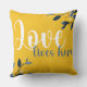 Celebrate the warmth of the season and the heart of the home with this reversible fall pillow. One side expresses gratitude with the phrase “Thankful Home,” set against a deep navy background and framed by watercolor leaves in golden and slate tones. Flip it to reveal a cheerful yellow design featuring “Love lives here,” lovingly lettered in cursive, with blue and golden leaves adorning the corners. This design pairs elegant autumnal vibes with emotional depth — perfect for living rooms, nurseries, and seasonal storefronts that value heart as much as style.