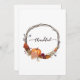 de Thanksgiving met een oranje pompoen, herfstbloemen, wijnstokken, takken, druiven, herfstbladeren en lettertekens. Het oranje en rode herfstjaar van de Thanksgiving van de van de wordt het seizoen van de herfst in aanmerking genomen.
