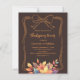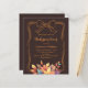 Une arrière - plan de couleur brun foncé. Décoré de feuilles de chute de couleur muette et d'un arc dessiné à la main. Personnalisez et ajoutez les détails de la fête. 1 feuille = 1 invite imprimé bord à bord.