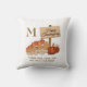 Dit is een moderne HAPPY THANKSGIVING Christelijke monogram gooiend kussen, ontworpen met pompoenen, lamppost en herfstbladeren, plus details. Dit is allen geplaatst tegen een gewone witte achtergrond. Dit zou een geweldige aanvulling zijn op je Thanksgiving thuisdecor. De extra kaarten, de giften en het huisdecor zijn beschikbaar in het Collectie van de THANKSGIVING door Berean Design.