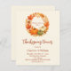 Een warme, zachte beige achtergrond. Versierd met herfst thema krans met sinaasappel gebladerte en pompoenen. ... Met de tekst: Thanksgiving Dinner geschreven met een modern handgeschreven stijlschrift. Personaliseer en voeg de details toe. 1 vel = 1 uitnodiging bedrukt rand tot rand.
