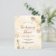 Een gouden herfst Thanksgiving Dinner-uitnodiging. Een gouden watergekleurde achtergrond met gouden eucalyptusbladeringen en smeltkroes glitterstof. Pas je partijgegevens aan en voeg deze toe.
