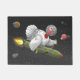 Een leuke en lieve Thanksgiving Doormat waar de Turkije is ontsnapt uit de Thanksgiving en met behulp van zijn raket door het universum reist.