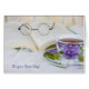 pansy floral tea cup op saucer en wit bont met open boek voor naamdag