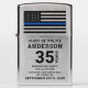 Thin Blue Line Police Retirement Zippo Lighter - VS American flag design in Police Flag kleuren, nood design. Deze gepersonaliseerde politieaansteker is perfect om je gepensioneerde politieagent te vieren, cadeaus van de politie-pensioenpartij, de politie-pensioenpartij. Geef deze zippo-aanstekers van de politie een persoonlijk tintje met politiemensen met een rang, naam, dienstjaren en pensioendatum en persoonlijke boodschap. Ideaal voor alle gepensioneerden van politieagenten en uittredingscadeaus van de politie. COPYRIGHT © 2020 Judy Burrows, Black Dog Art - Alle rechten voorbehouden. Thin Blue Line Personalized Police retirement Zippo Lighter
