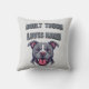 Bold pit bull artwork for proud dog parents who love strong, loyal dogs. Featuring a powerful bully-breed illustration with stone-look lettering. Black on one side and light grey on the reverse, so you can change the look depending on your mood. This graphic throw pillow is perfect for pit bull fans, and anyone who knows their pup is built tough! Show off your love for big-hearted bullies with this statement piece. The matching throw blanket is available in my store.