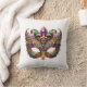This throw pillow is shown in a festive Mardi Gras mask print.