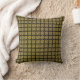 Throw pillow with gold leaves in a square pattern on a black background. Designed by Alan Skyrme.